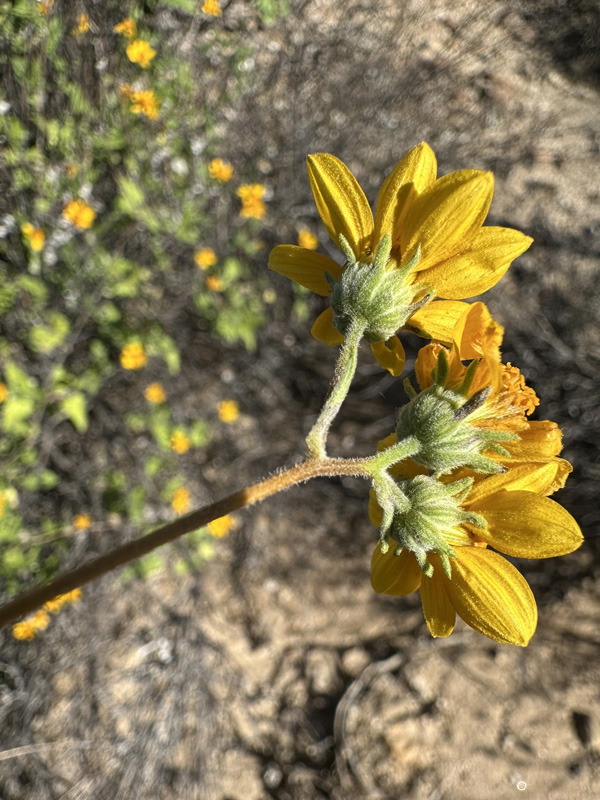 Triangle or Baja California Goldeneye (Bahiopsis triangularis) was one of the few species in flower, and it was doing so sparingly and with not many leaves.