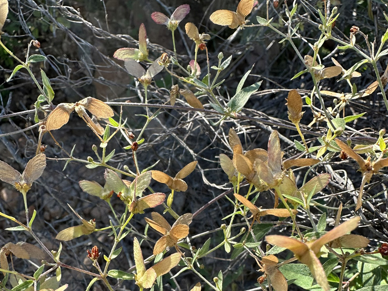 I was surprised by how few composite species were blooming because the Fall months are usually a prime season for them, even when there has been little or no rain. I only saw one California Trixis plant (Trixis californica var. californica) with one flower! The San Diego Goldeneye (Bahiopsis laciniata) and the endemic Central Desert Encelia (Encelia asperifolia) that had colored the area with copious blooms on my last visit were mostly dry and had very few leaves and almost no flowers. There were a few Sweetbush individuals (Bebbia juncea var. juncea) with a few flowers, but most flower heads were in seed.