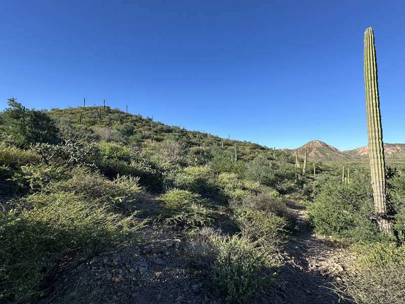 Another view of the lush hillsides around Punta Prieta. This is the NE side of the hill. The peak in the distance (west) is Cerro Rojo.