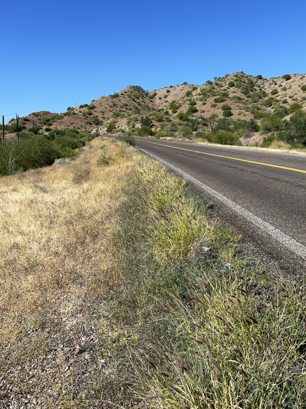 Ground cover was drying out but there were still a lot of green plants flowering along at roadsides.
