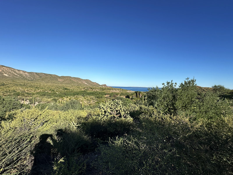 View of the south end of Punta Prieta, Mulegé. Trees & shrubs were leafy & robust while annuals & perennial herbs formed dense cover.