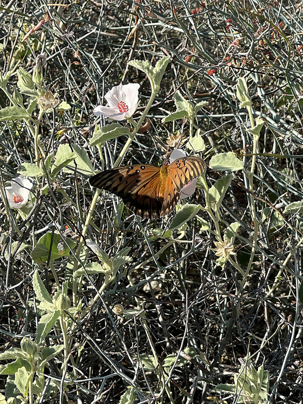 Gulf Coast Frittilary butterflies were abundant all over the area & in my garden. Local Passion Flowers (Passiflora palmeri & P. pentaschista) are the host plants. The adults feed on a wide range of species.